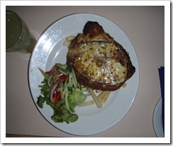 The addition of eggplant to the tomato and cheese sauce initially attracted me to the choice I made but I was immediately disappointed. The schnitzel placed before me was overcooked, borderline black around the edges.